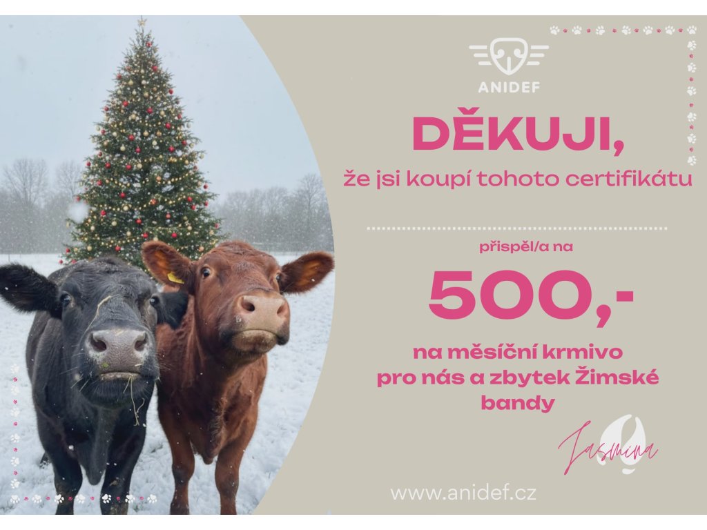 Certifikát Vánoce: Krmivo pro Jasmínu a Olivera